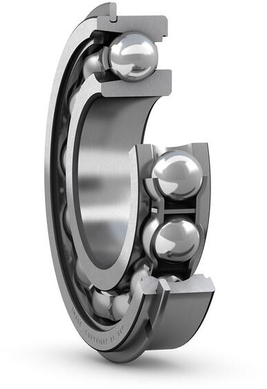 • Korlátozott kétirányú axiális terhelés mellett nagyobb radiális terhelések felvételére képes, mint a töltőnyílás nélküli csapágyak