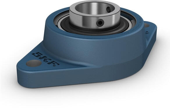 Ezek az ovális-peremes golyóscsapágy-egységek megfelelnek az ISO szabványoknak. Egy szélesebb belső gyűrűvel ellátott, állítócsavarral rögzíthető betétcsapágyat tartalmaznak, és alkalmasak az állandó és változó forgásirányú alkalmazásokhoz is. A csapágy egy öntöttvas csapágyházba van beszerelve, amely a gép falához vagy keretéhez csavarozható. A golyóscsapágyak felveszik a szerelésből adódó mérsékelt egytengelyűségi hibát, de rendszerint nem teszik lehetővé az axiális elmozdulást.
